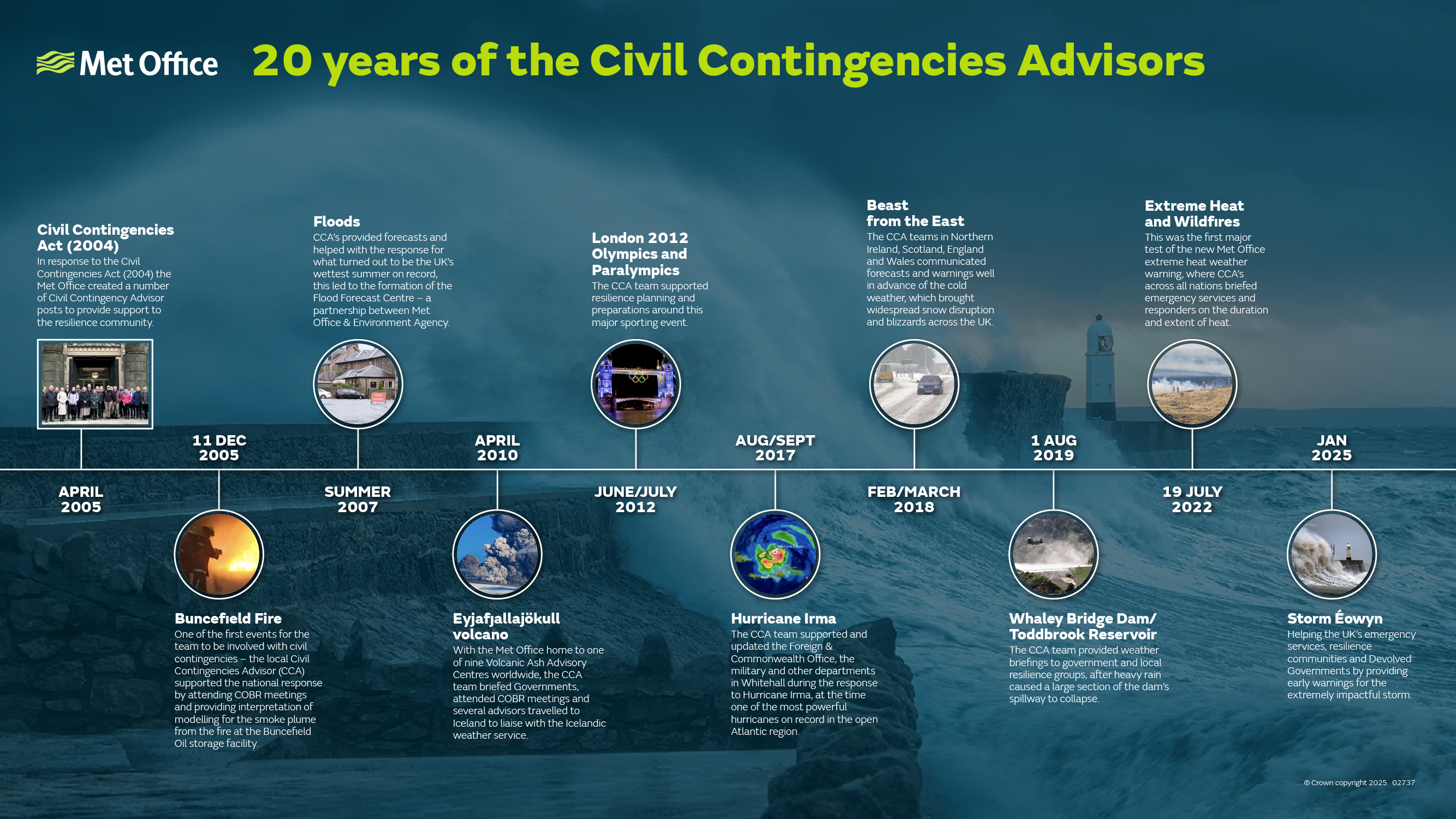 The Met Office marks the 20th anniversary of its Civil Contingencies Advisors, a dedicated team of meteorological specialists who have been instrumental in supporting the UK's resilience community during severe weather events.