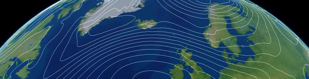 In the average state of the atmosphere, the North Atlantic surface pressure is relatively high in the subtropics at latitudes 20°N to 40°N ('the Azores High'), and lower further North at latitudes 50°N to 70°N (the 'Icelandic Low'). The North-South pressure difference determines the strength of the westerly winds across the Atlantic and is known as the North Atlantic Oscillation (NAO).