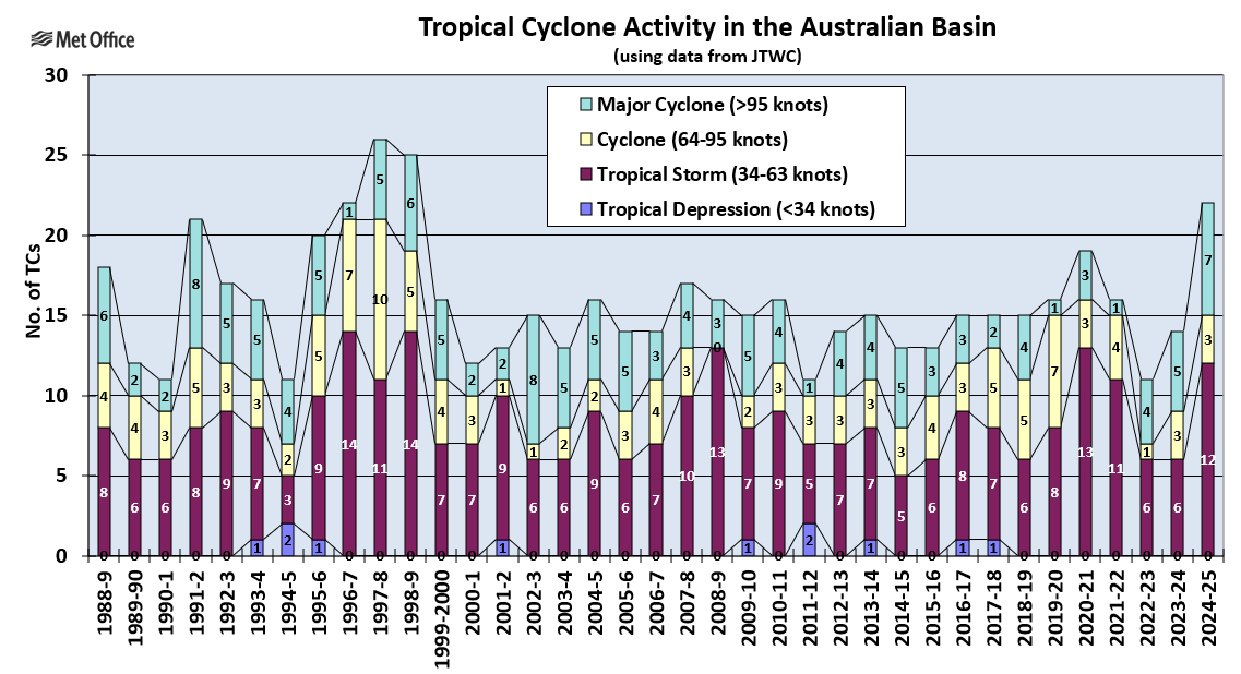 Past tropical cyclones - Australian basin tropical cyclone activity