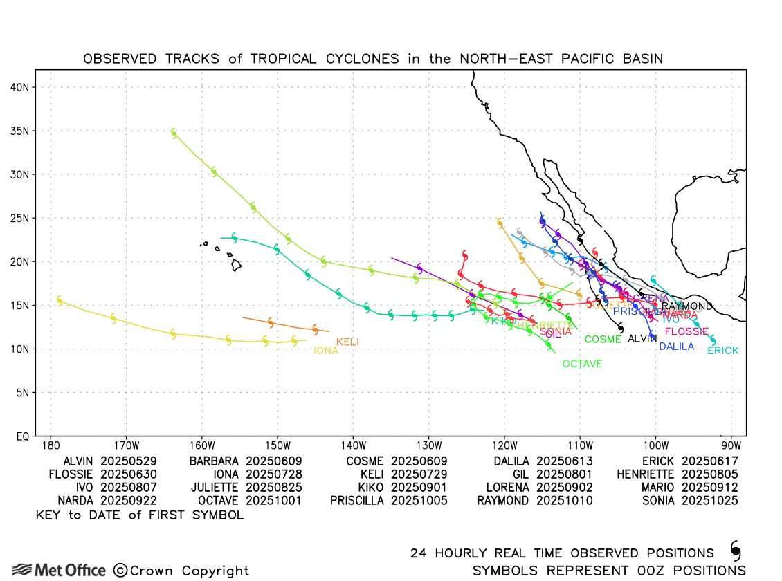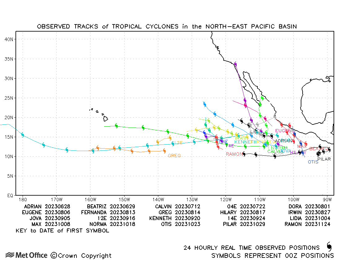Past tropical cyclones - North-East Pacific tropical cyclone activity