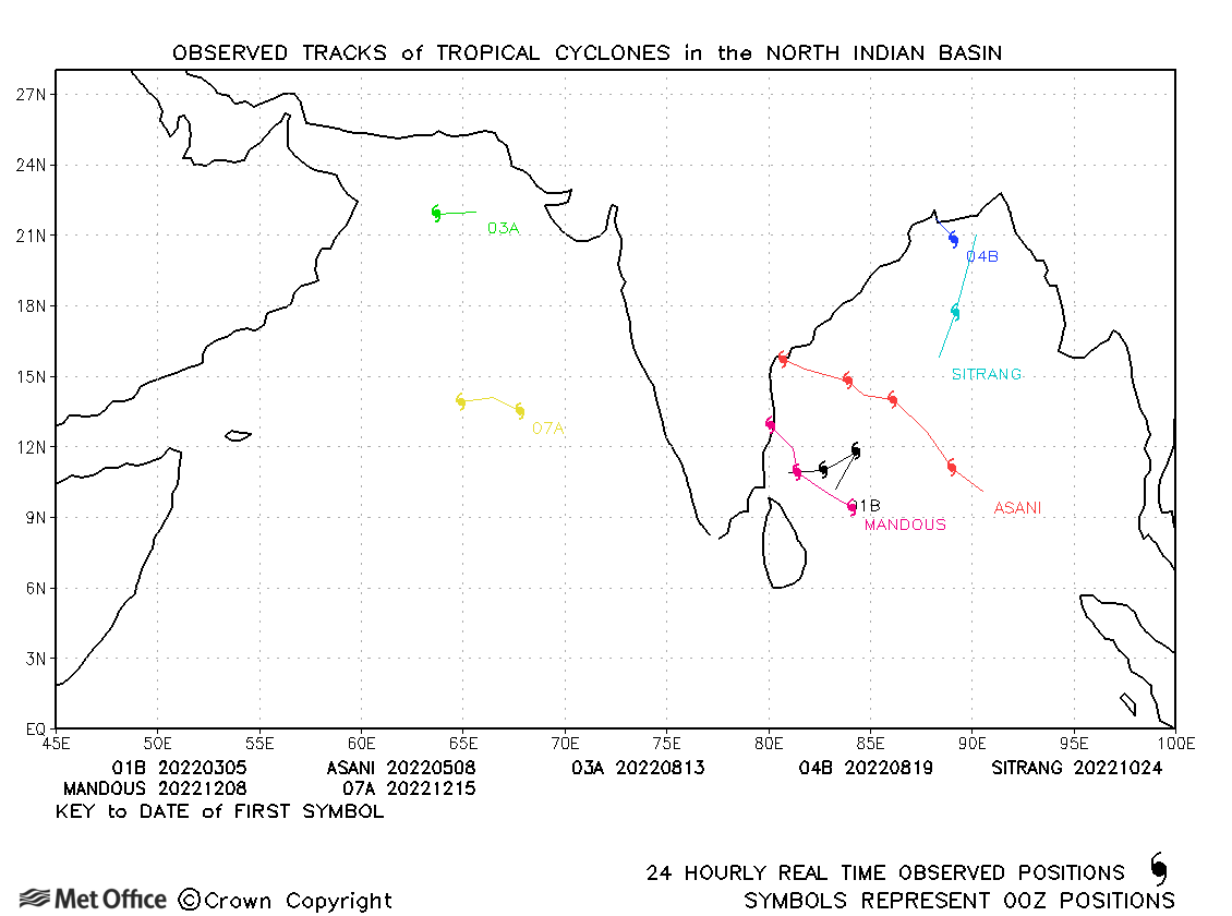 Past tropical cyclones - North Indian tropical cyclone activity
