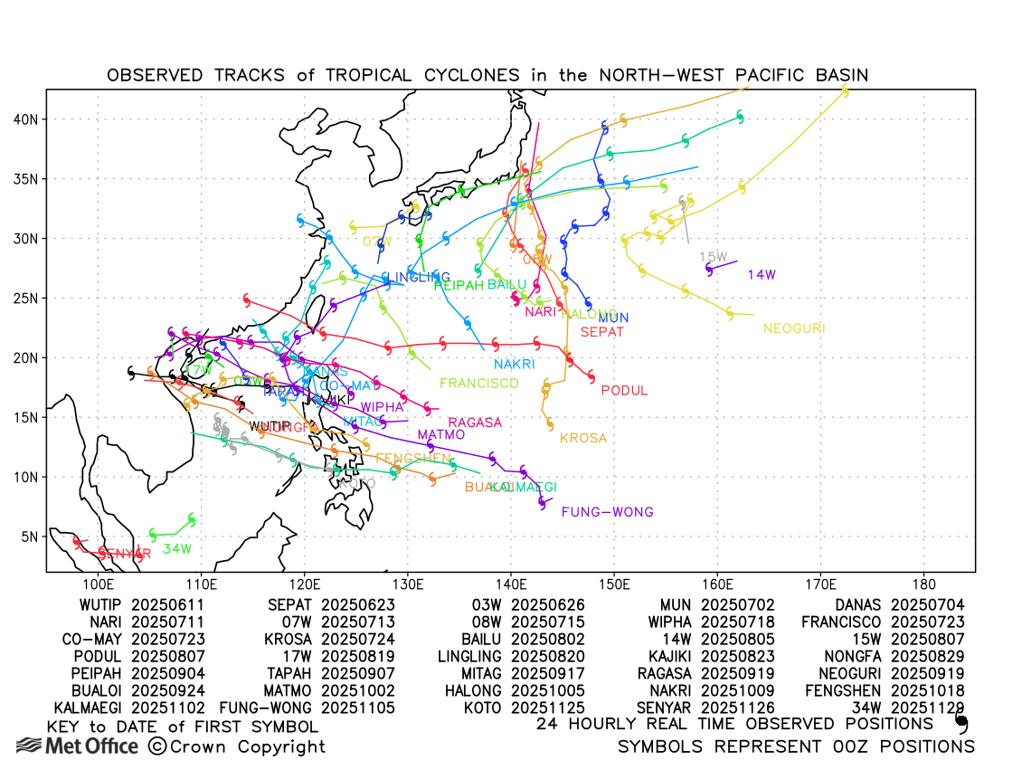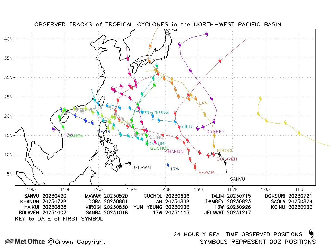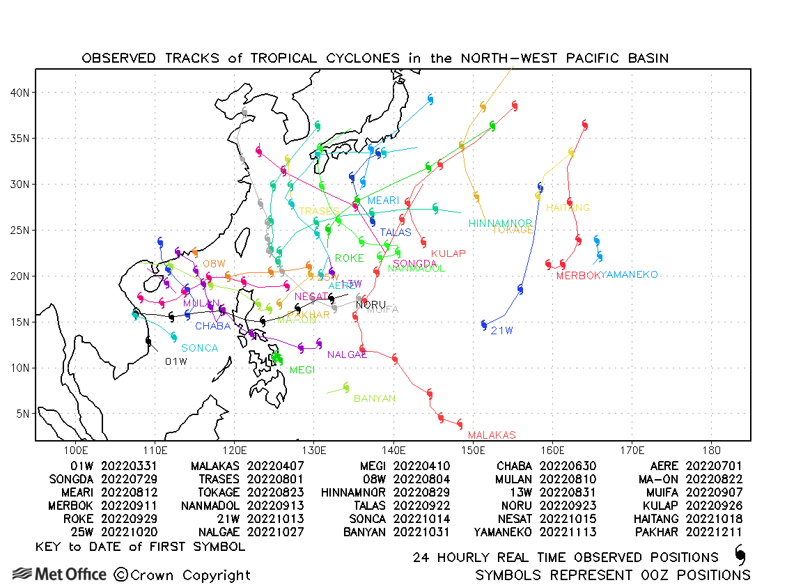 Past tropical cyclones - North-West Pacific tropical cyclone activity