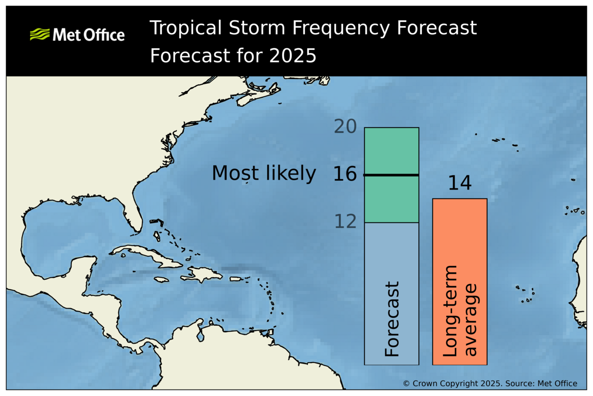 North Atlantic tropical storm seasonal forecast 2025