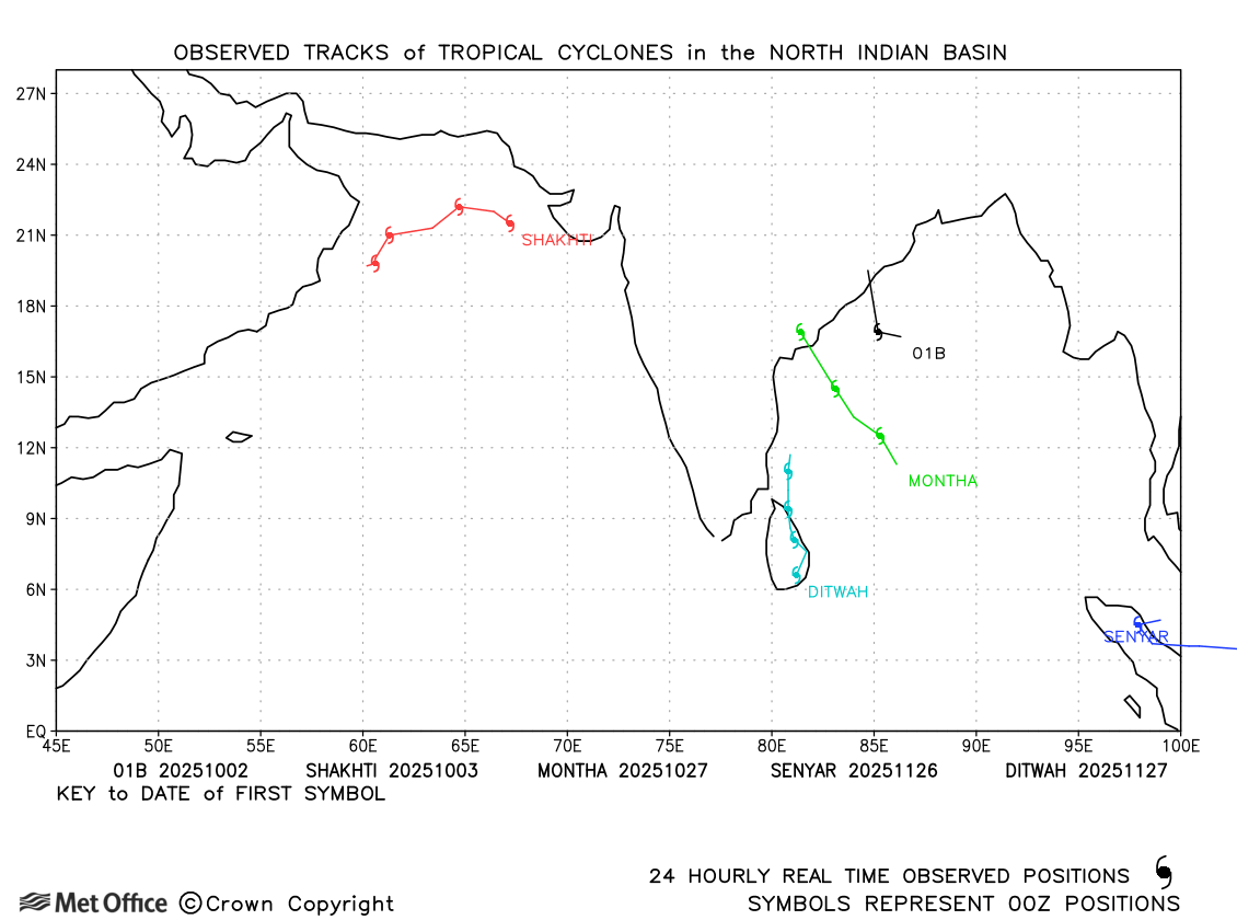A summary of tropical cyclone activity in the Northern Hemisphere for the 2025 season is presented below together with an assessment of the performance of the Met Office global model in predicting the track and intensity of these tropical cyclones.