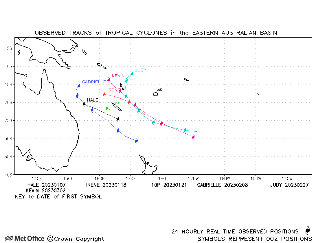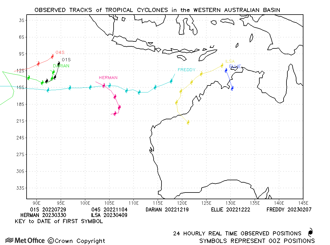 A summary of tropical cyclone activity in the Southern Hemisphere for the 2022-23 season is presented below together with an assessment of the performance of the Met Office global model in predicting the tracks of these tropical cyclones.