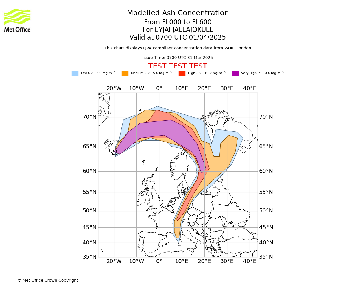 Feature Objects (IWXXM Format): Representations of areas where ash exceeds concentration thresholds at various flight levels.