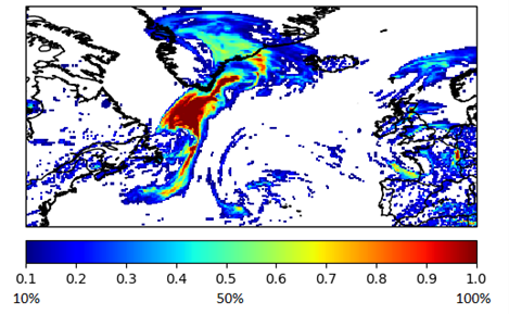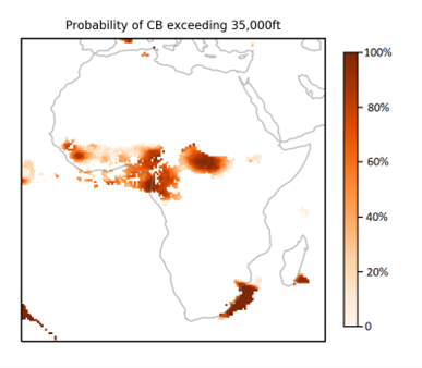 3) Probability that the cumulonimbus cloud tops will exceed 35,000ft.